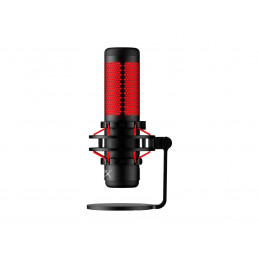 HyperX QuadCast är en USB-kondensatormikrofon som erbjuder hög ljudkvalitet och mångsidiga funktioner för streamare, podcaster och innehållsskapare. Den är utrustad med fyra valbara upptagningsmönster: stereo, omnidirektionellt, kardioid och bidirektionellt, vilket gör den flexibel för olika inspelningssituationer. Mikrofonen har en inbyggd anti-vibrationsstötdämpare för att minska oönskat ljud och ett inbyggt popfilter för att dämpa plosiva ljud. Med en tap-to-mute-funktion och LED-statusindikator kan användaren enkelt stänga av mikrofonen vid behov. Den levereras med en 3 meter lång USB-kabel och en adapter som passar både 3/8” och 5/8” gängstorlekar, vilket gör den kompatibel med de flesta stativ.